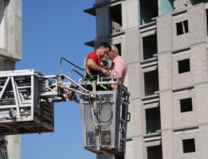 13. katta iskelede mahsur kalan işçileri itfaiye kurtardı